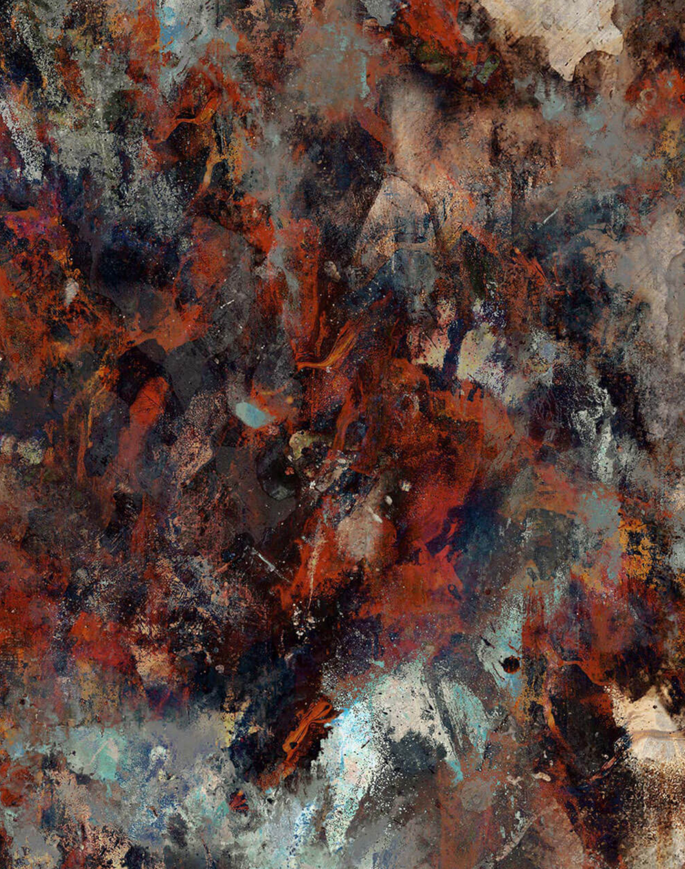 17 Patterns’ Empyrean Wallpaper morphs traditional painting with digital artistry into an abstract crescendo of complex textures and enriched colour. Working in collaboration, British contemporary artists – Paris & Nosca Inc repeatedly convolute pre existing matter to craft a formless composition of painterly gestural marks. Each multiple layer of fiery earth tones delivers a soulful montage of harmonious hues and uplifting energy. Developed to coordinate perfectly within both period and modern interiors, Empyrean pulls art out of the picture frame onto an alluring contemporary wallcovering.