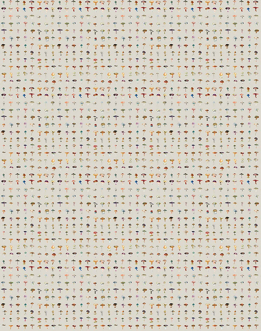 Inspired by woodland walks with his family in Somerset, British contemporary artist, Paris, represents nature’s treasure trove with this stunning watercolor interpretation of British wild mushrooms. Exploring the mysteries of the earth, ancient Britain, standing stones, ley lines, the equinox and solstice, Paris and 17 Patterns have produced a collection of vibrant organic wallpapers available across large, medium and microdot scales. The Forager collection delivers the beauty of the English countryside into your home. This natural selection is available on luxurious metallic white mica, contemporary non-woven grey, and for a psychedelic twist, fluorescent ‘magic’ mushrooms are presented on black non-woven papers.