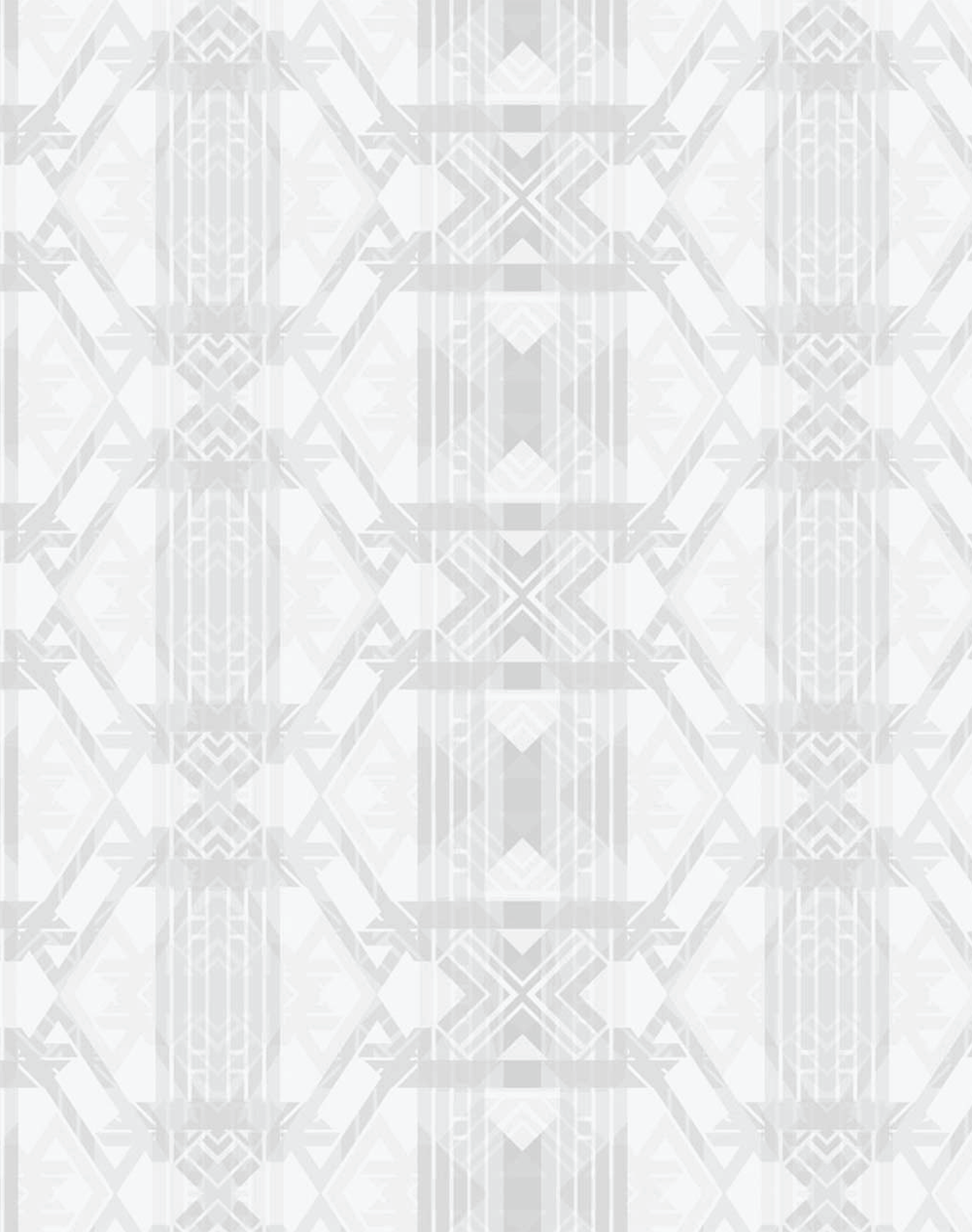Echoing an age of unbridled decadence, this elegant Art Deco-inspired collection effortlessly merges the geometric lettering styles of British contemporary artist, Paris, with the innovate digital creations of east London designer Nosca Inc. This 17 Patterns collaboration pays homage to Paris’s infamous letter forms, with Nosca Inc developing repeat pattern ideas and visual concepts to produce new art forms which reach far beyond their original articulation. With its delicate framework structure, echoes of diamonds and architectural symmetry, this bold geometric collection delivers lavish ornamentation into both period and modern interiors.
