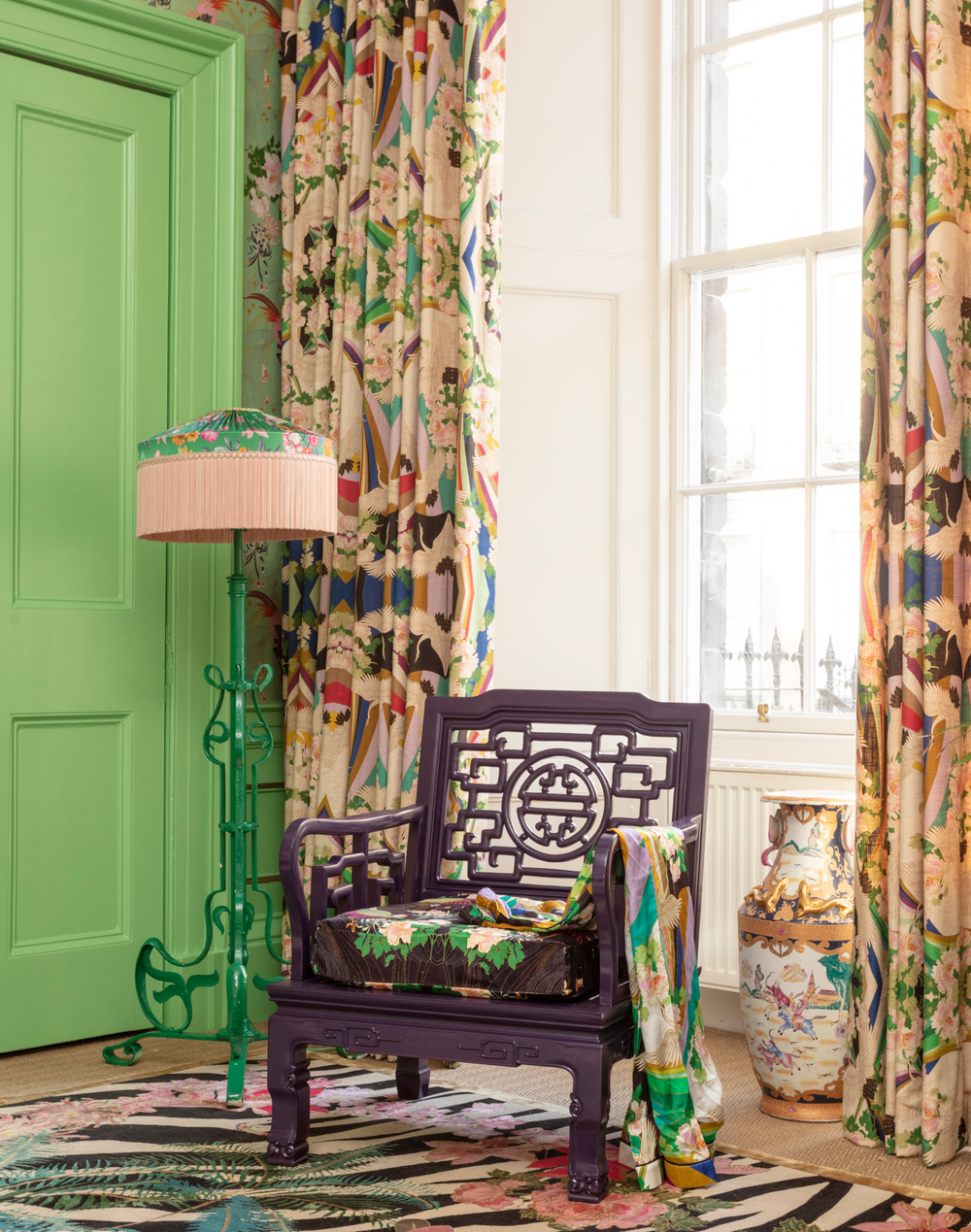 Full of color, hope and positivity, Arc en Ciel came about during lockdown, a time when the world needed a lift. The positive power of color is immediately obvious here, and the sweeping, elegant shapes within the pattern bring balance to create a joyful design.