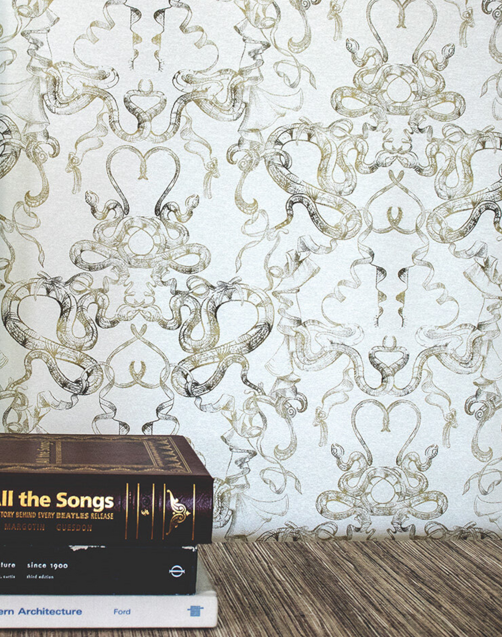 Bows and Toes…..and everything not so nice. A design that is fun and frilly, with subjects not as sweet, as sugar and spice. Breathed into existence with an artful-minded, twisted, somewhat damask pattern, amused for countless spaces-- this multifarious arrangement is lavish with themes destined to inspire comment! What do you see?