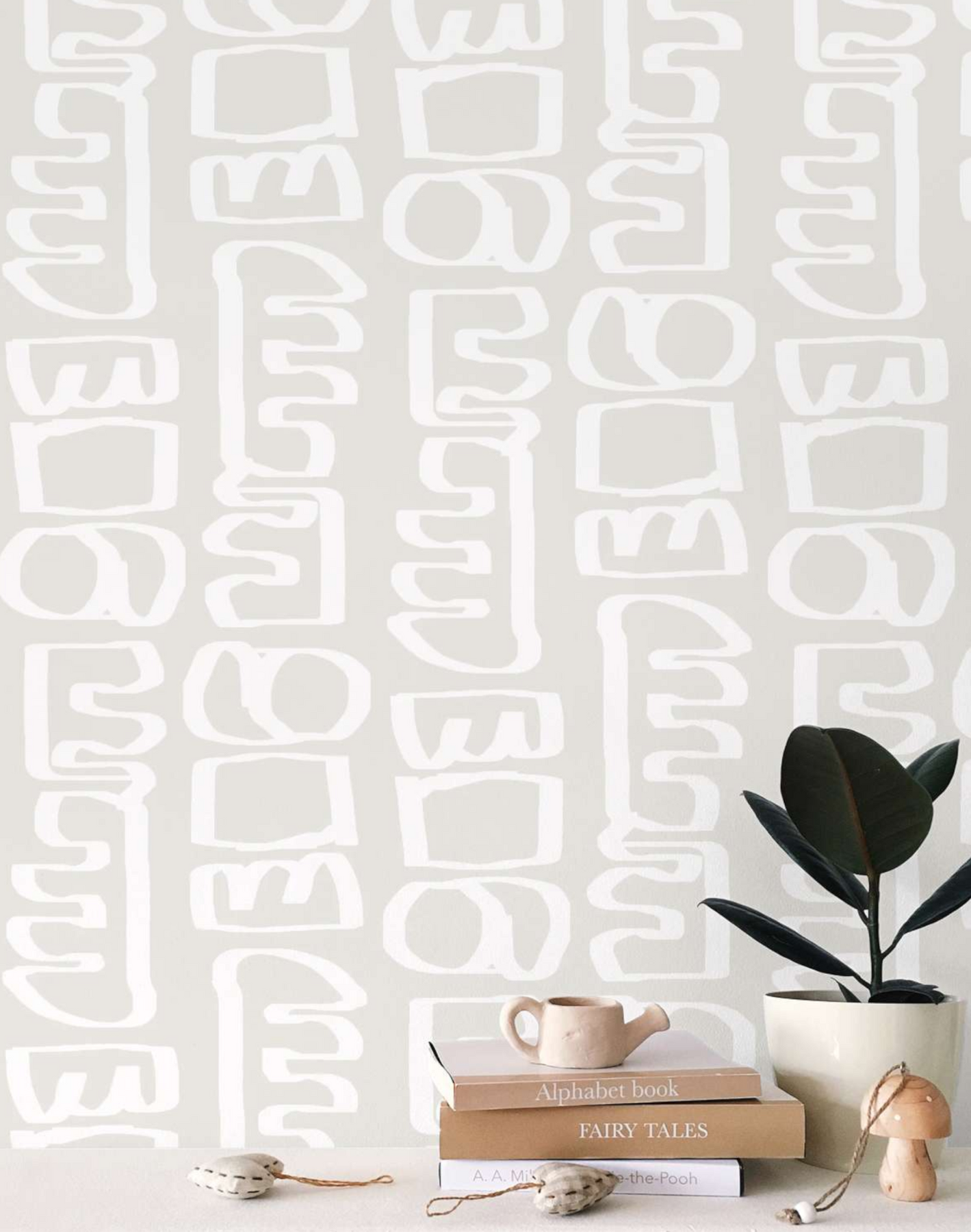 White illustration on a gray beige background