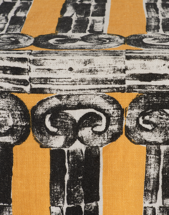 Hand screen printed with reactive dyes in our London Studio in two color layers. This design began life as a wood block print developed during our time on residency at Cove Park in Scotland.