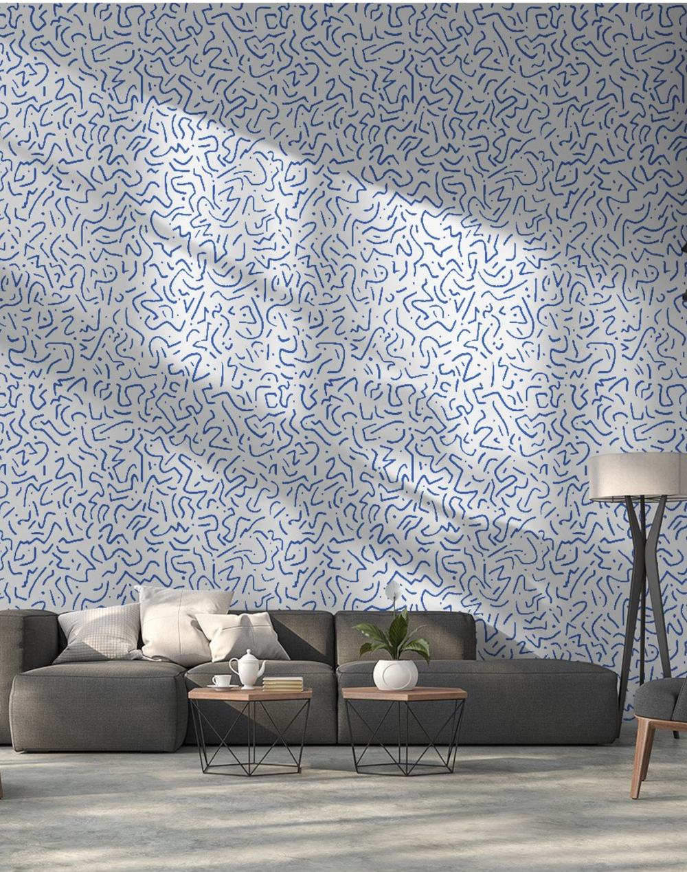 Merenda created this pattern from a drawing by her partner, Max Kahan. The energetic pen strokes hint at Keith Haring’s art from the ‘80s and make the eye dance throughout the pattern’s negative space. Each of the 10 colorways are named after dance moves from the ‘80s.
