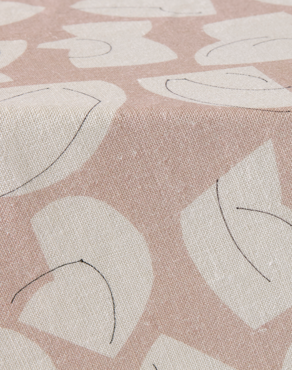 Printed with reactive dyes onto a textured heavyweight linen which softens with use. This print has a complementary off white silhouette and off black line detail. Because of the nature of the linen, the solid background color has a slightly textured appearance.