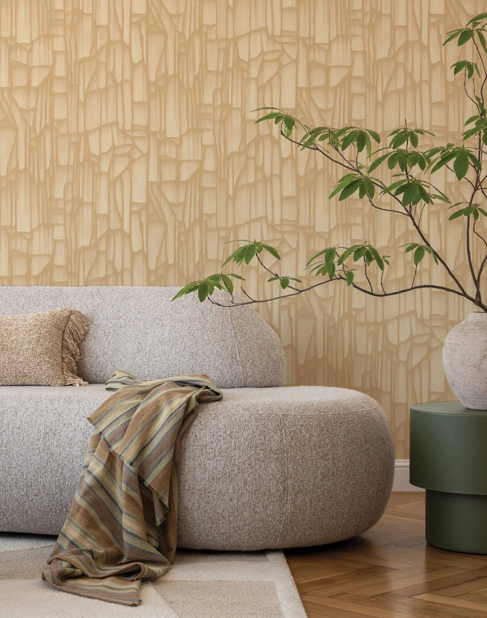 This soft stone color serves as the base for our customizable monochrome version of this design. This color works wonderfully in so many spaces, adding subtle texture and style. If you would like to submit a color swatch and customize this design, email us directly at hello@thepatterncollective.com.