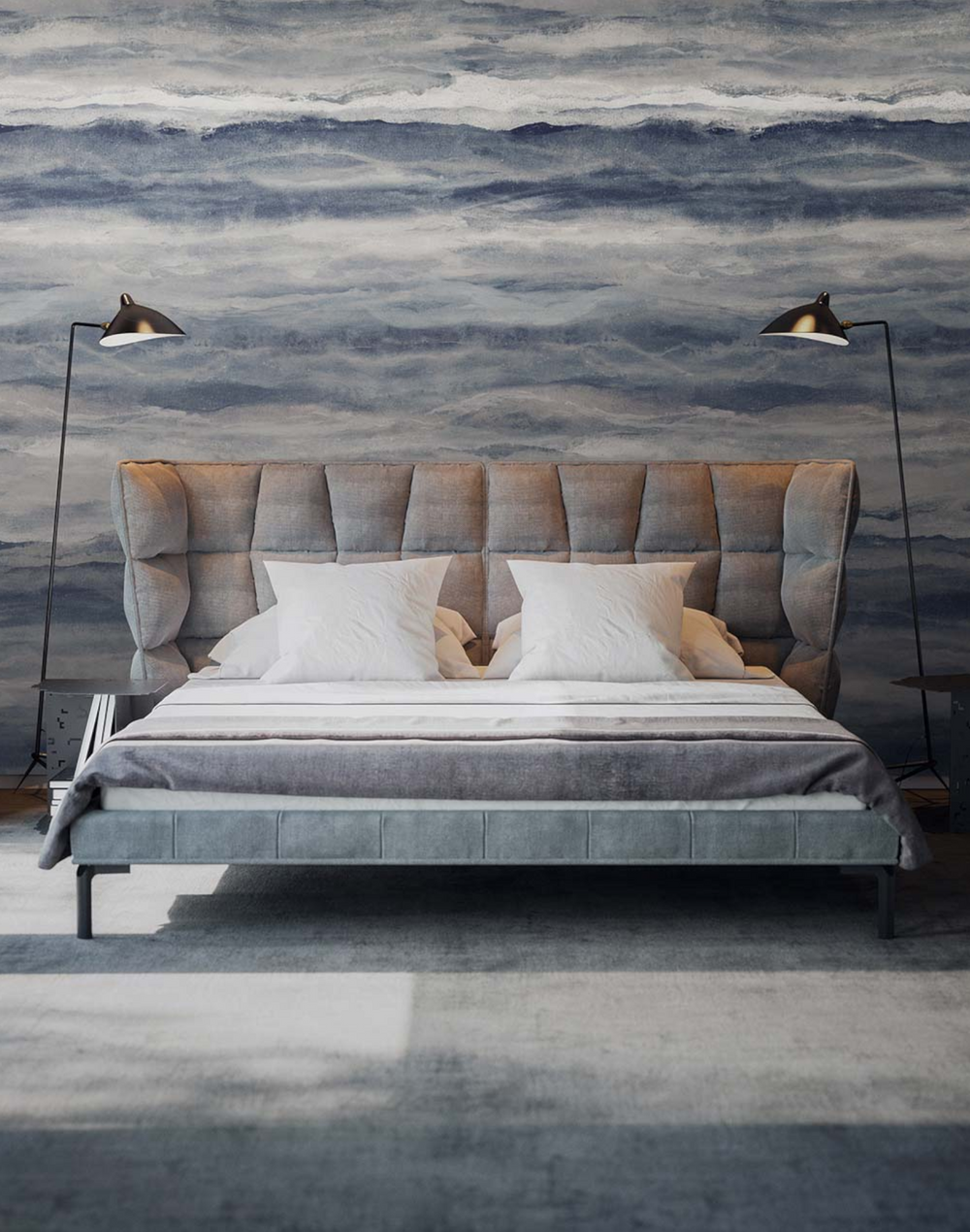 Stira’s Hand depicts a body of alluring mythical landscapes across a series of large-scale wallcoverings. Encompassing the three elements – Land, Sky, and Sea, these beautifully painted scenes furnish boundless imagination into any interior. Brought to life with impeccable British craftsmanship, Stira’s abstract brush strokes and subtle pigmentations are presented on our finest fibrous parchment, creating an authentic textured backdrop reminiscent of the artist’s canvas. Indulge your imagination across four vivid colorways, Stratum, Horizons, Changing Tides (+ Ombre Edition) and Nightfall (on Silver Mica).