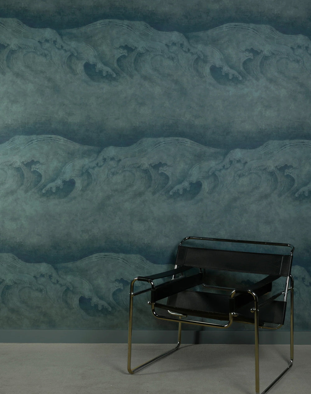 Wave is inspired by an antique Japanese screen. An originally foreboding scene, this interpretation isolates the moments of beauty that exist in nature's powerful magnitudes. With a mural-like repeating pattern of undulating rows, Wave is available in the rich colors of our natural world.