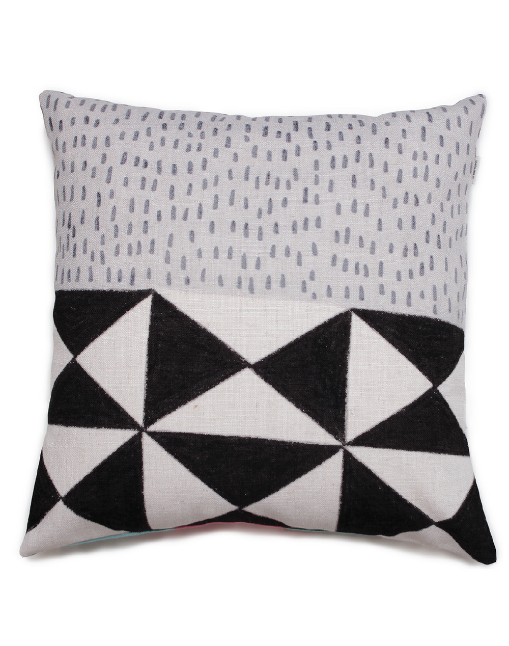 Each hand made cushion features different designs on back and front printed on high quality linen/poly blend fabric.
