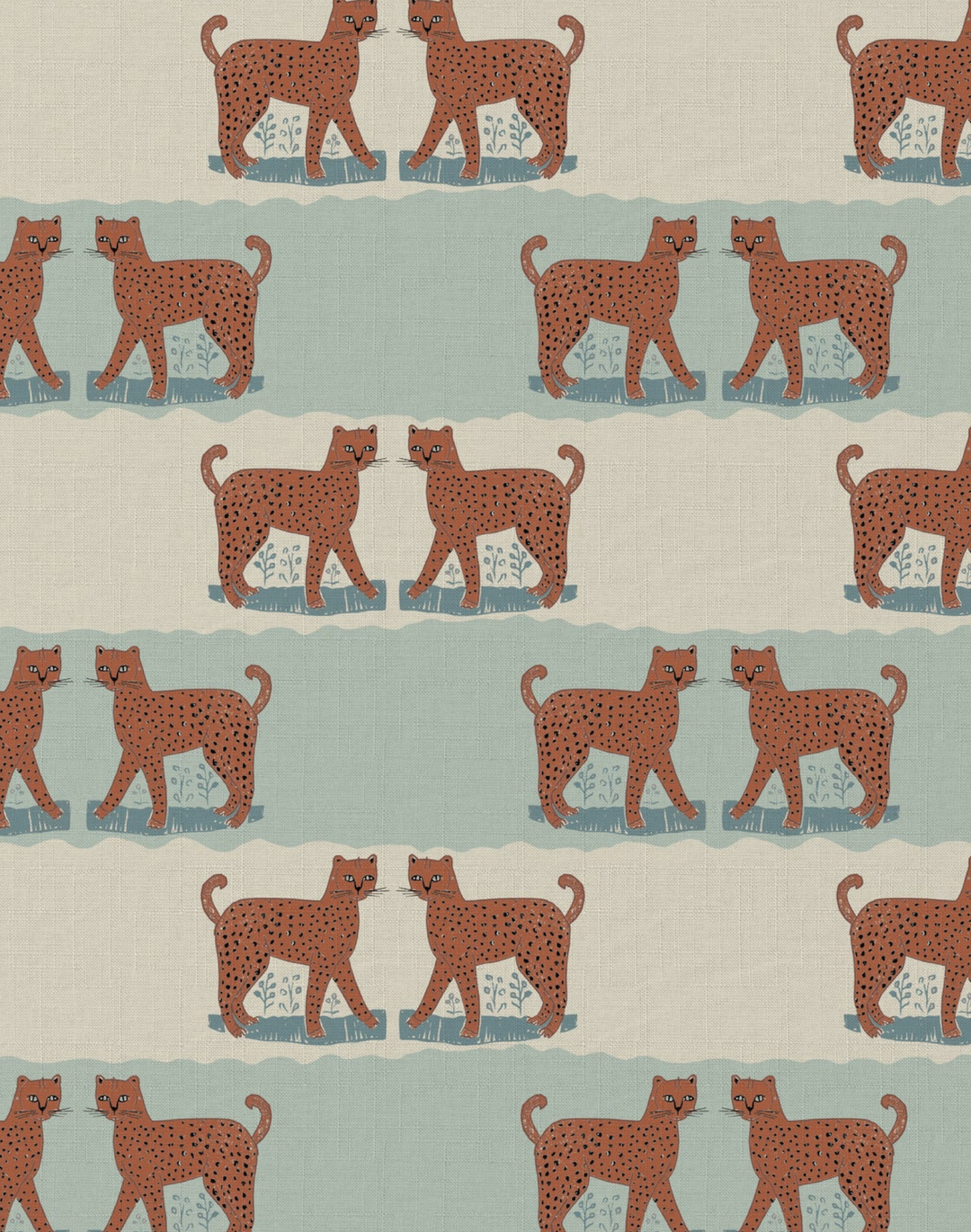 A Leopard Never Changes it's Spots, Blue - Linen Fabric