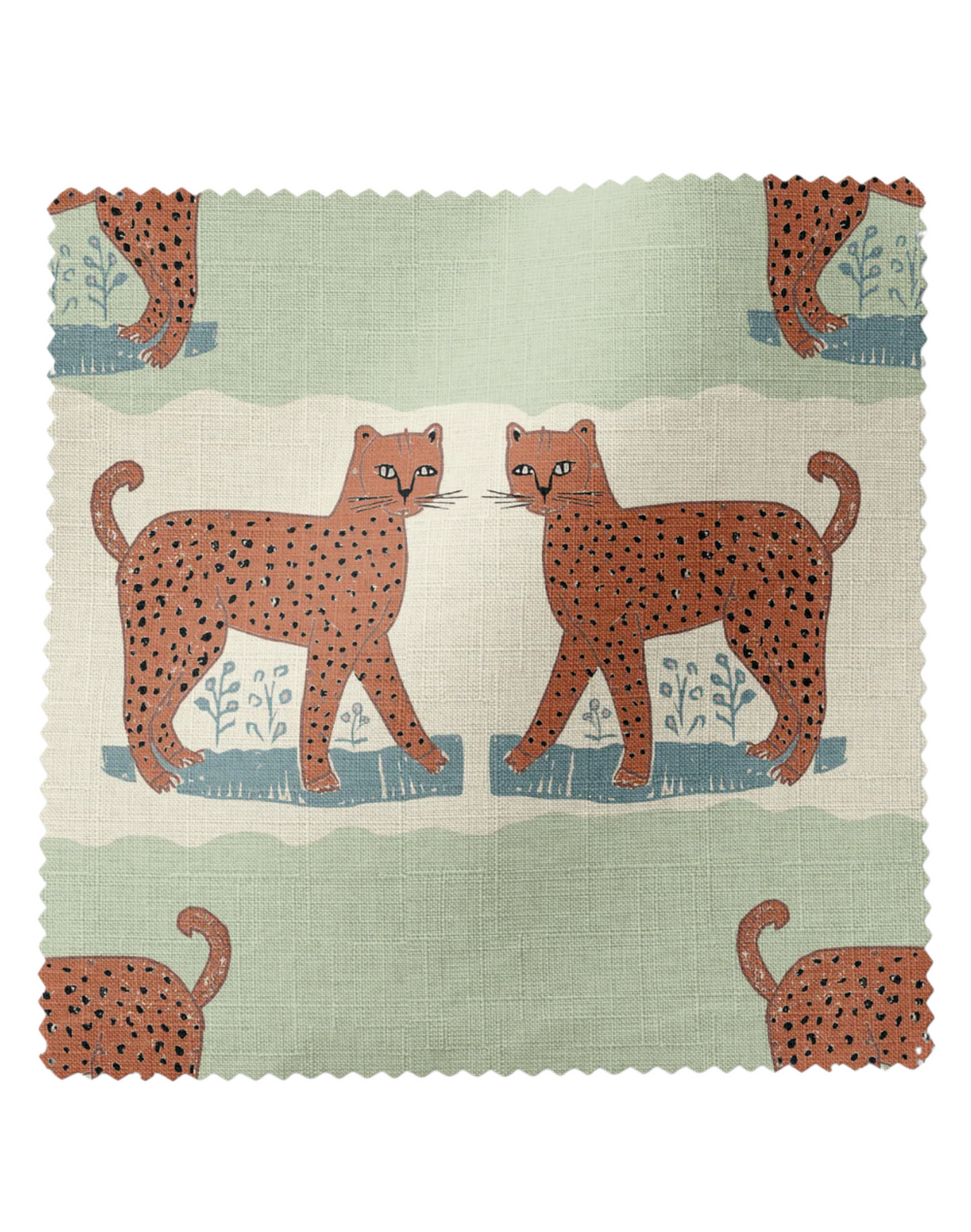 A Leopard Never Changes it's Spots, Green - Linen Fabric