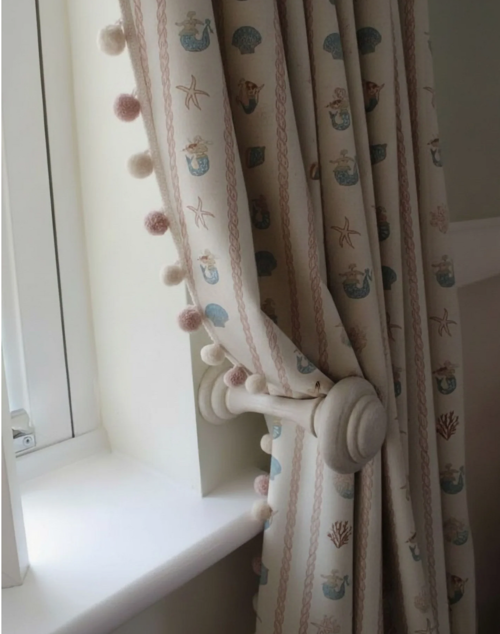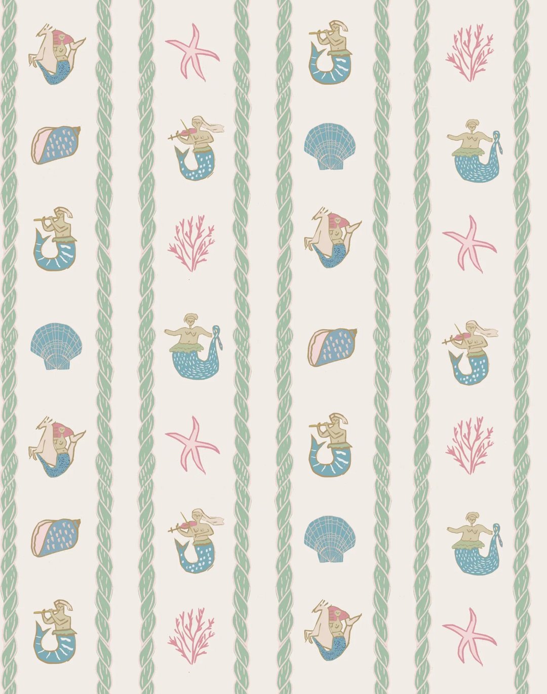 Swim Away with the Mermaids, Pink and Green - Linen Fabric