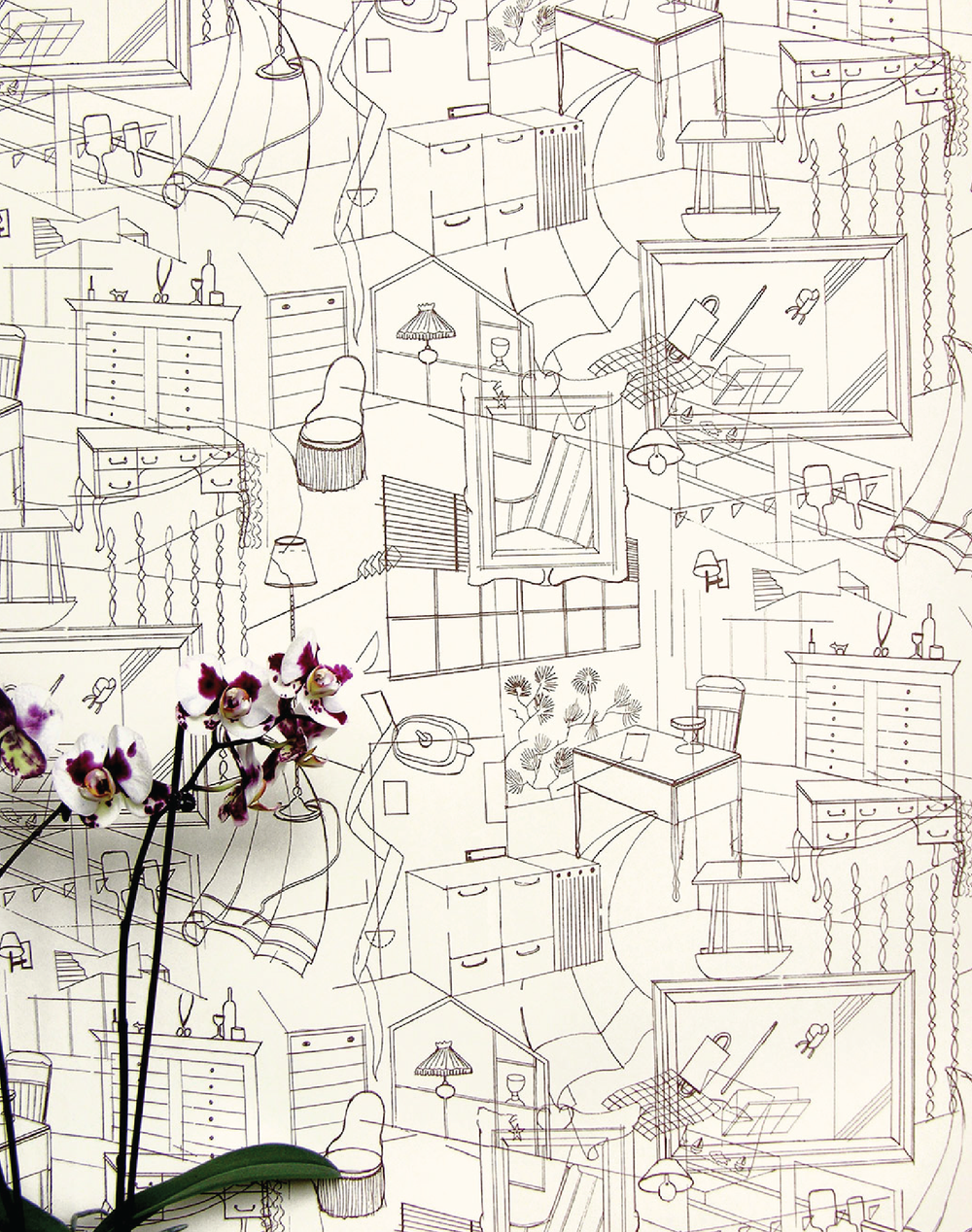 The winner of Elle Decoration’s Best Wallcovering in 2007, the popularity of Homes has continued thanks to its timeless, characterful design. Hand-drawn elements of mid-century American interiors are captured using soft black or brown lines, set against a cream background.