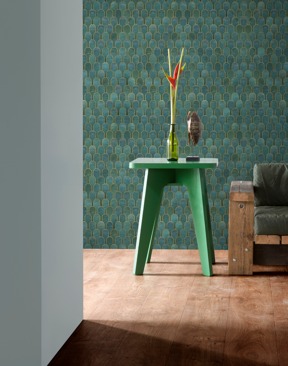 • Heavy-duty wallpaper with paper top-layer and non-woven backing. Glue is applied to wall