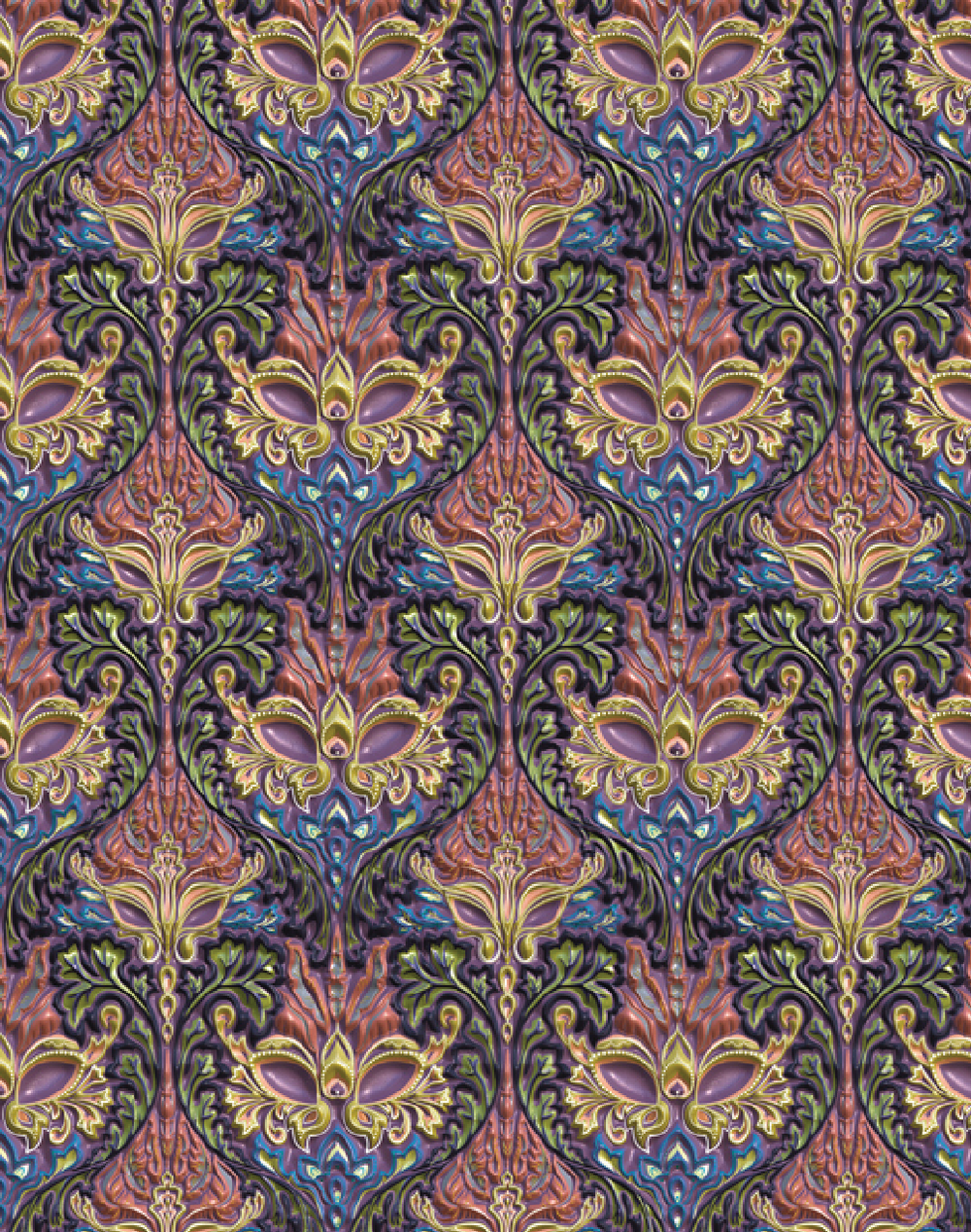 Da Mask takes its inspiration from sources ranging from Indian woodwork to Victorian fairgrounds, through French palaces to Staffordshire potteries.  The colors lift off the wall with a sense of the theatrical.  Embellished with intricate details the Da Mask range looks engraved and hand painted and metamorphosizes into each incarnation by the use of color and subtle shading.