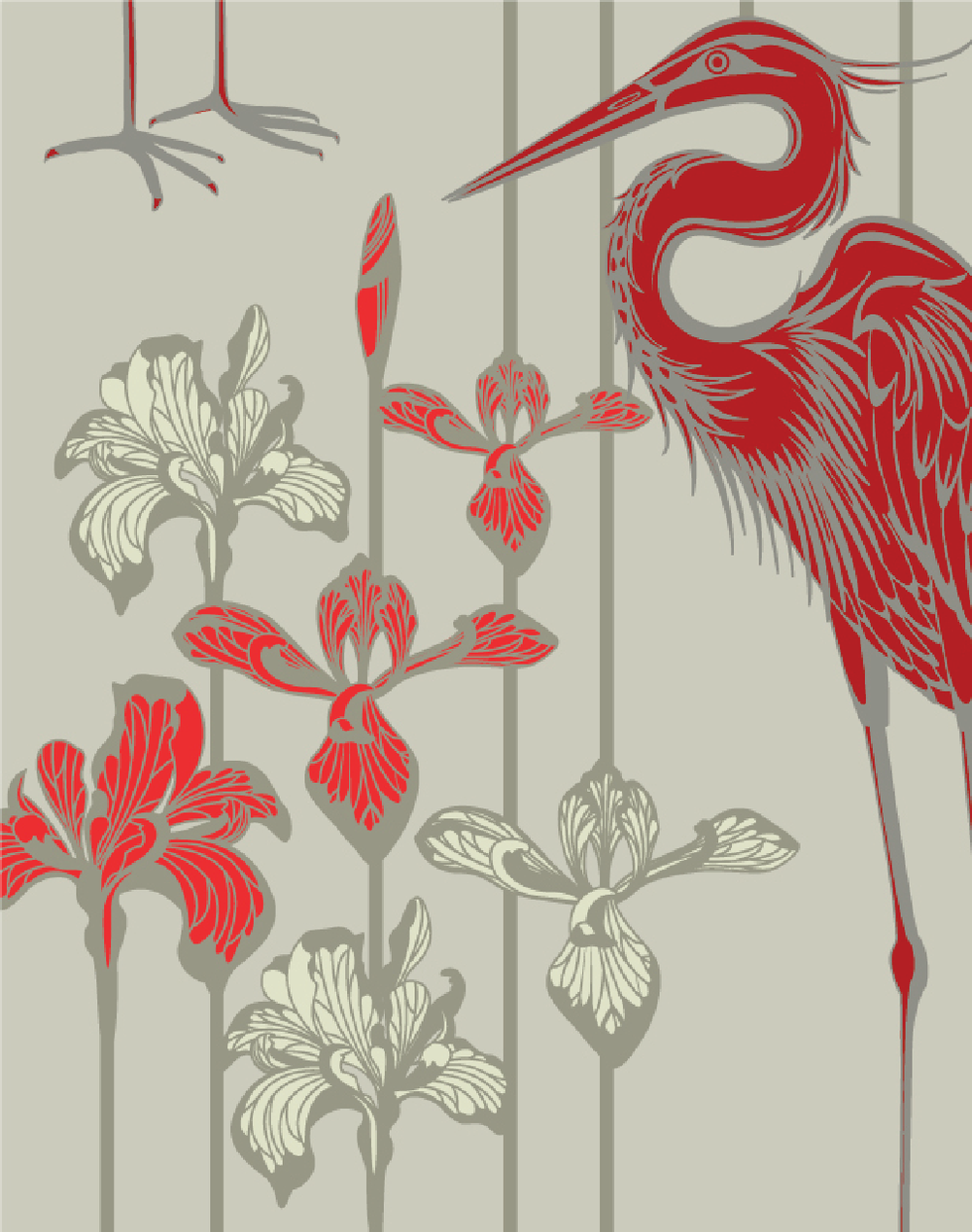 The Heron wallpaper features great blue herons standing with irises in the background.