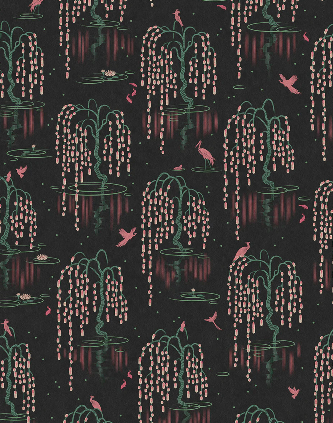 Inspired by the Japanese gardens of Holland Park and featuring delicate illustrations of cherry blossoms, lotus flowers, exotic birds and koi carp. Printed on luxuriously textured paper with a subtle and sophisticated sheen, create an oasis of calm that transports you to watercolor world.