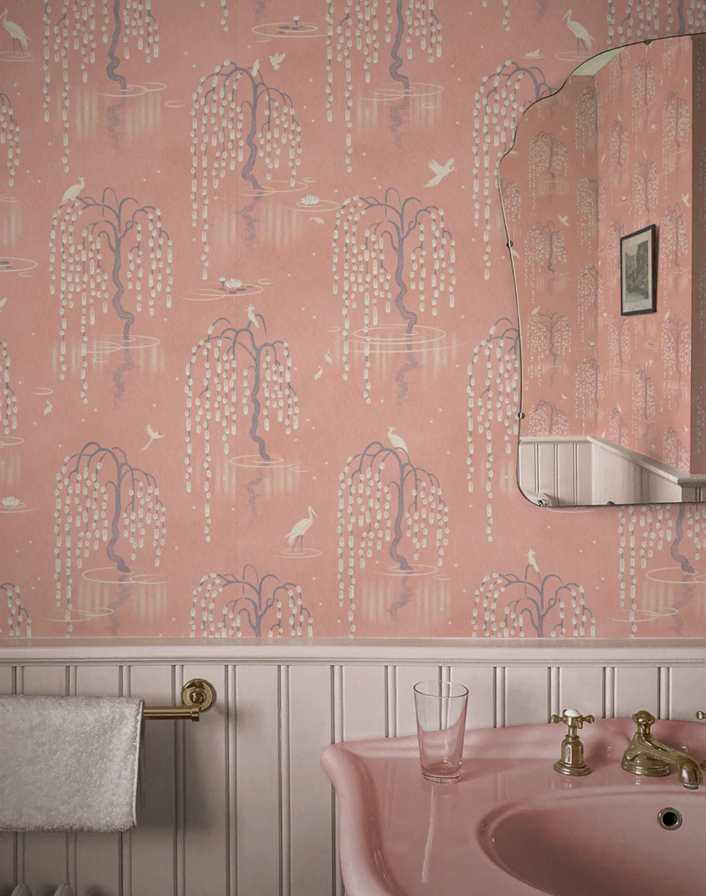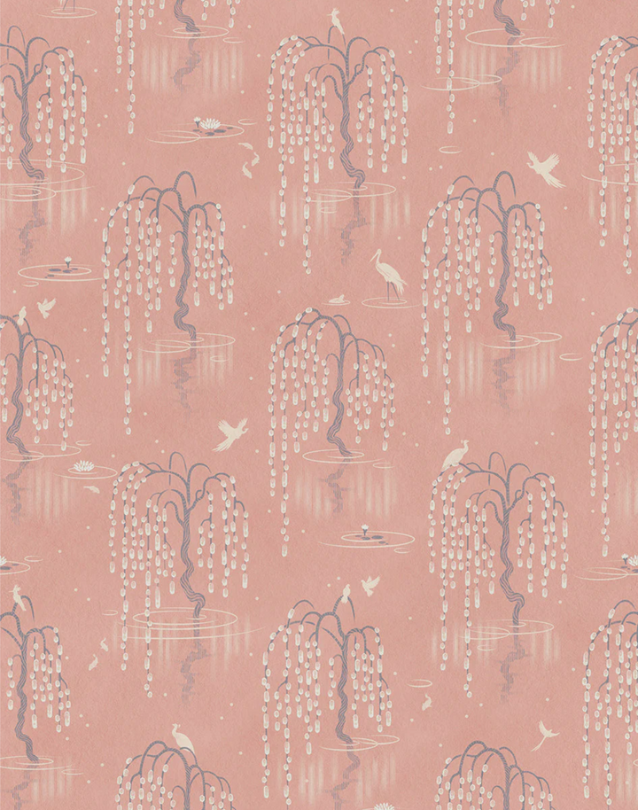 Lotus Pink –  this works particularly well as a bathroom wallpaper with a delicate soft-pink base and accents of blue and cream.