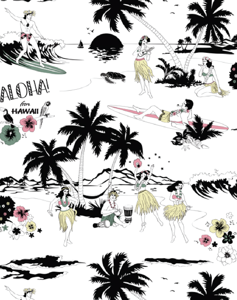 Whoa, Lucy! It's hotting up in here... Get me a drink with one of those little umbrellas in it... This Hawaiian themed tropical wallpaper is a sure way to heat up any room. Don't forget to bring the bongos!