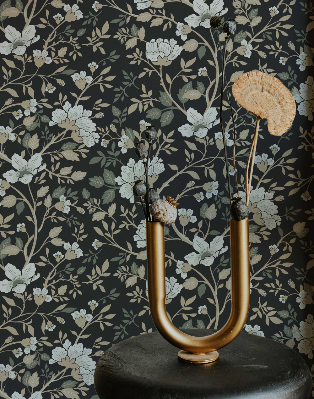 The Camelia Study Collection was Inspired by vintage botanical illustrations and heritage interiors, featuring hand-drawn vines, blooming florals, and layered foliage in rich colorways. This design carries a sense of history and warmth that compliments any space.