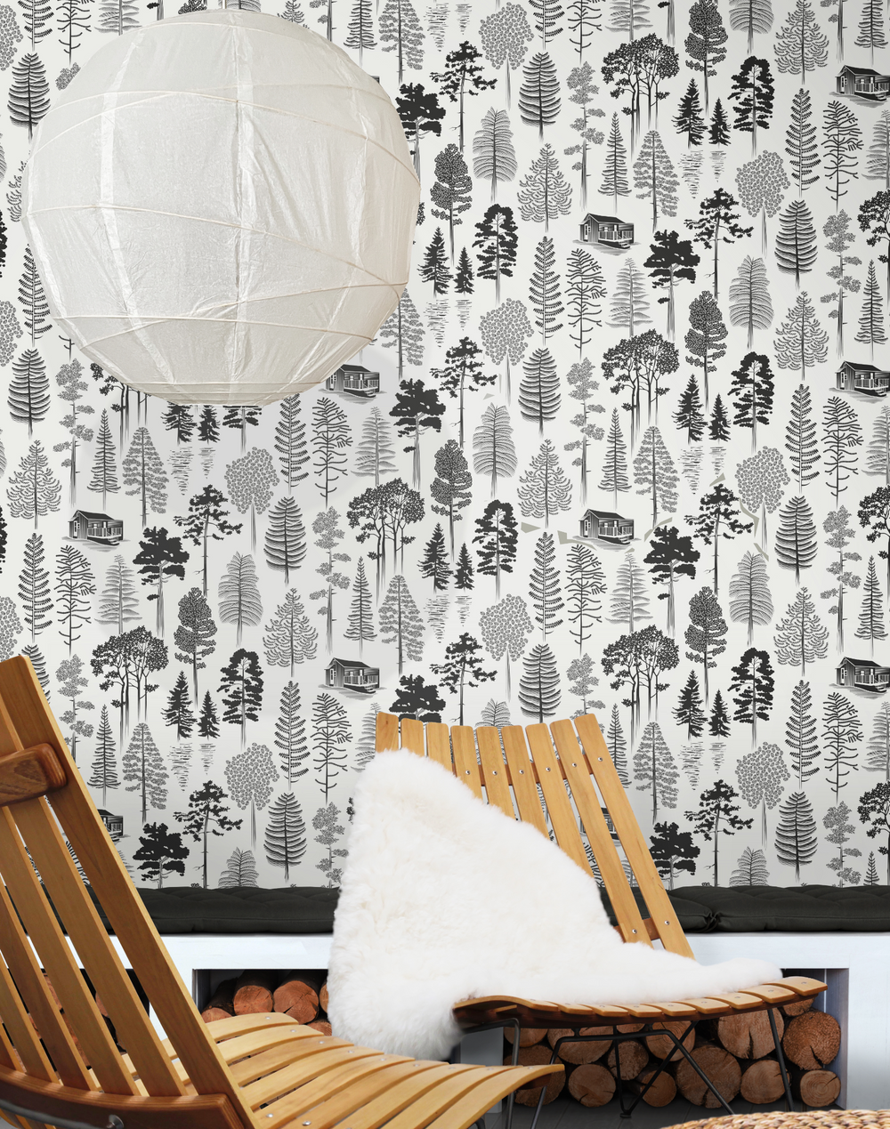 After years of frenetic New York trips, we decided it was time to discover more of what the state has to offer. So we hired a car and drove to Willow in upstate New York. On the way we stopped off at Woodstock and Beacon. This wallpaper captures the atmosphere of that trip, staying in a little wooden cabin on Silver Hollow Road, in the shadow of the Catskill mountains. Various species of trees native to the area are represented in the print, including Red Pine, Eastern Hemlock, Yellow Birch and Quaking Aspen.