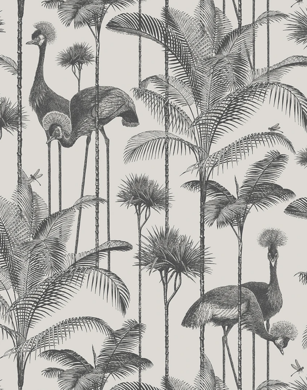 Featuring the elegantly & fabulous Grey Crowned Crane amongst lush palm trees and a refreshing soft coral colorway, this latest creation will bring a breezy atmosphere to your interior.