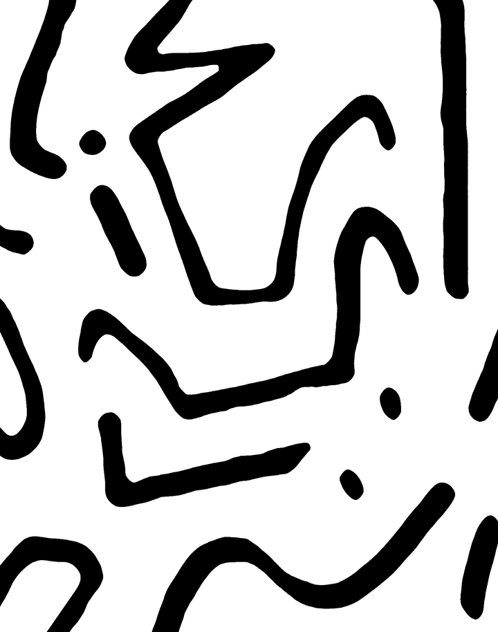 Merenda created this pattern from a drawing by her partner, Max Kahan. The energetic pen strokes hint at Keith Haring’s art from the ‘80s and make the eye dance throughout the pattern’s negative space. Each of the 10 colorways are named after dance moves from the ‘80s.
