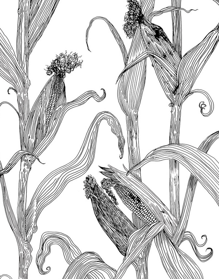 To Merenda, corn symbolizes getting back to your roots and freedom. Growing up in Maryland, she lived down long lanes surrounded by cornfields. Watching the corn cycles always fascinated her—watching them grow so big, die and get cut down, only to happen again the next year. It also symbolizes life and rebirth, having another chance and starting new again. Mais pays homage to those cycles.