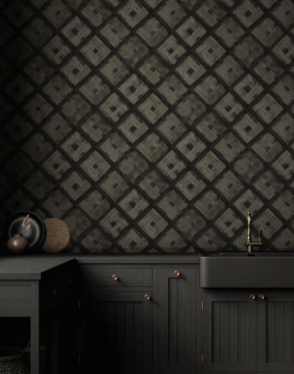 Clays Hatch wallpaper takes inspiration from traditional clay tiles. Offset layered brush strokes create a reimagined rhombus repeat pattern of Moorish sophistication.