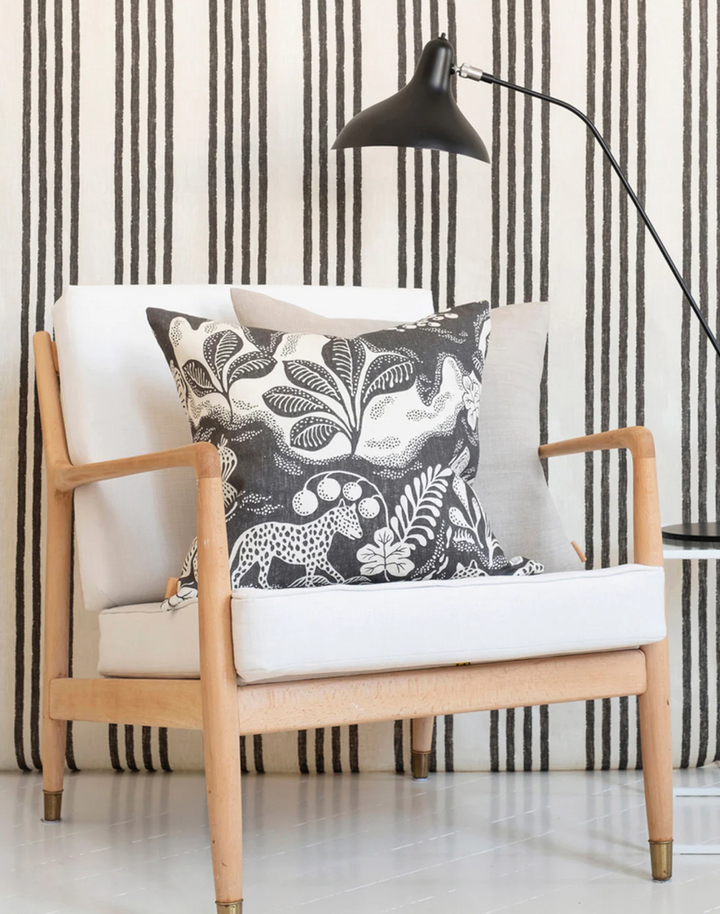 Fields is drawn by hand, inspired by the imperfect lines which are almost straight and with lively edges, graphics created by mankind in nature when collaborating with mother earth. There is something comforting about fields, what they stand for and what they bring to the table. This design is a great backbone in any interior, harmonious dimensions and repeat giving room for whimsical organic prints to be added. Fields is printed by our Master printers, on our beautiful and sustainable high quality linen weave, which is lively and make our patterns age with grace.