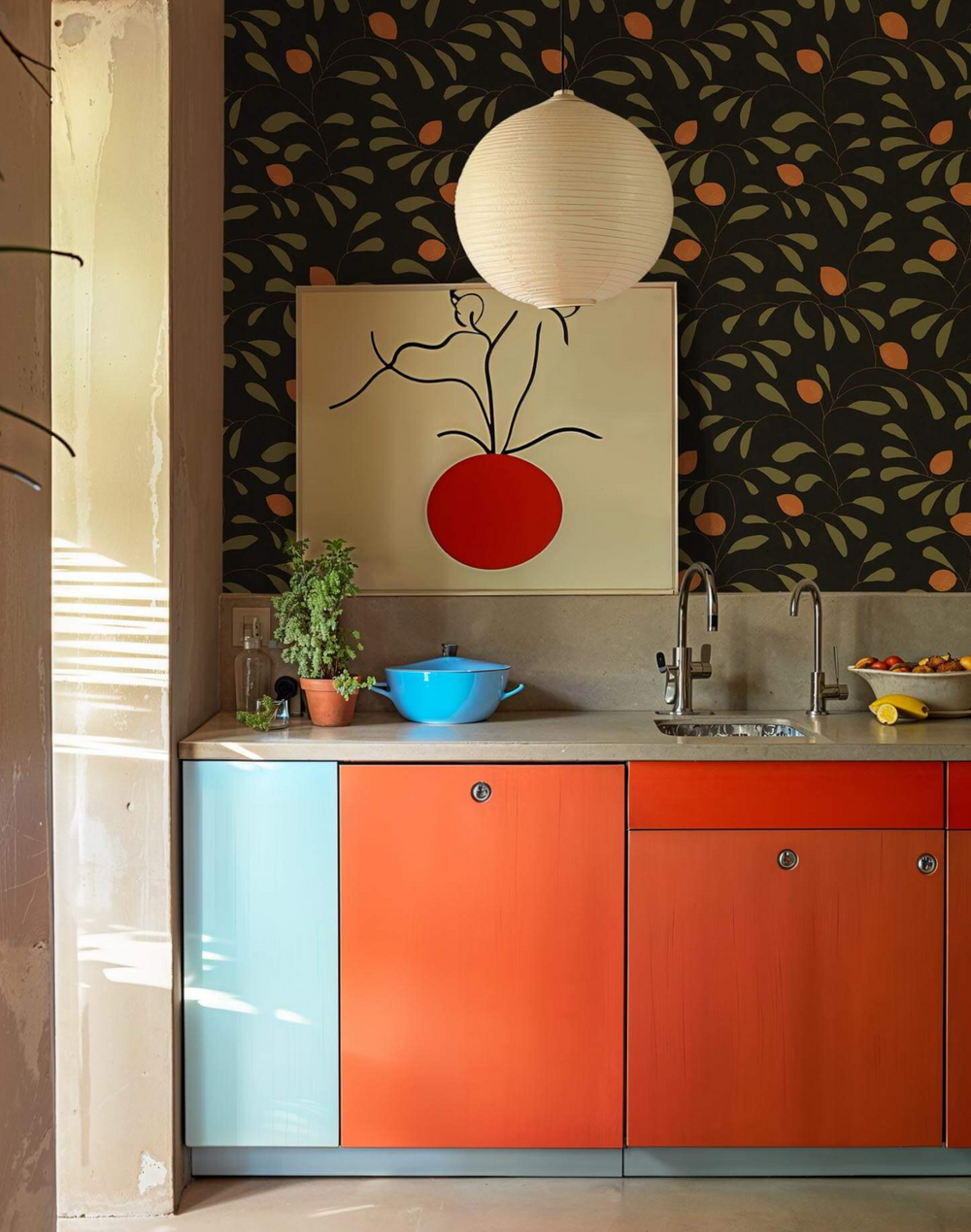 Coordonne’s Fresh Lemons Black is a vegetal inspired wallpaper in black tones from the New Primitivism collection. Citrus fruits hanging under a radiant sun.