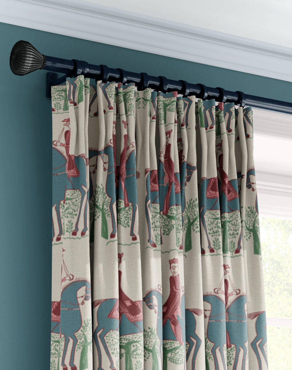 Wiggly Squiggly, Blue & Red - Linen Fabric
