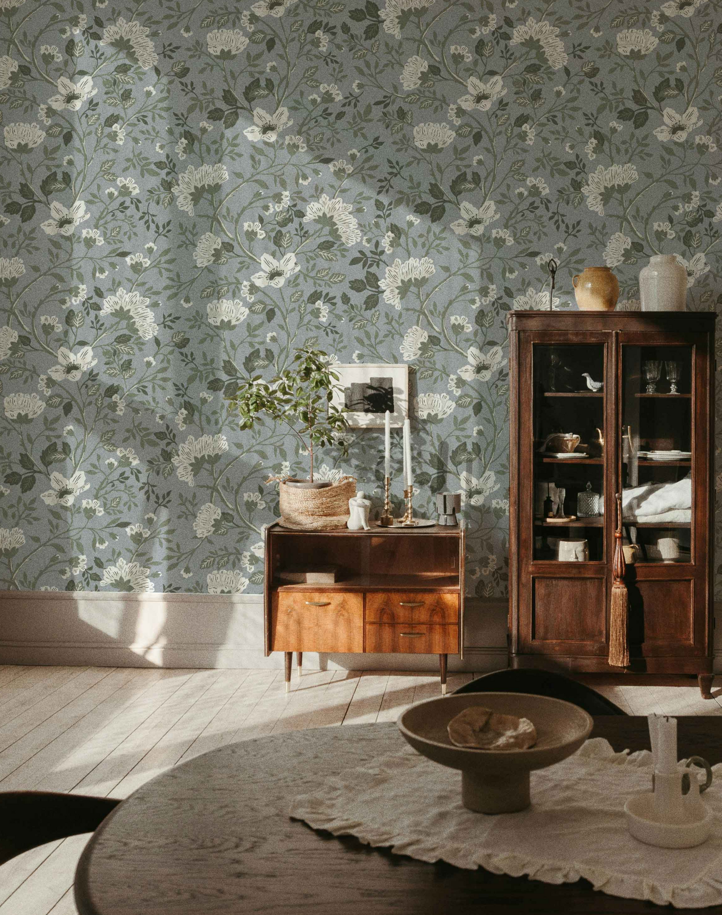 Each Riverpine pattern is painted or illustrated by hand, drawing from nature, vintage textiles, and overlooked architectural details—aged walls, worn fabrics, and everyday surroundings that carry history and texture. Every design is developed slowly and with care, with attention to how it will shape the feeling of a space.