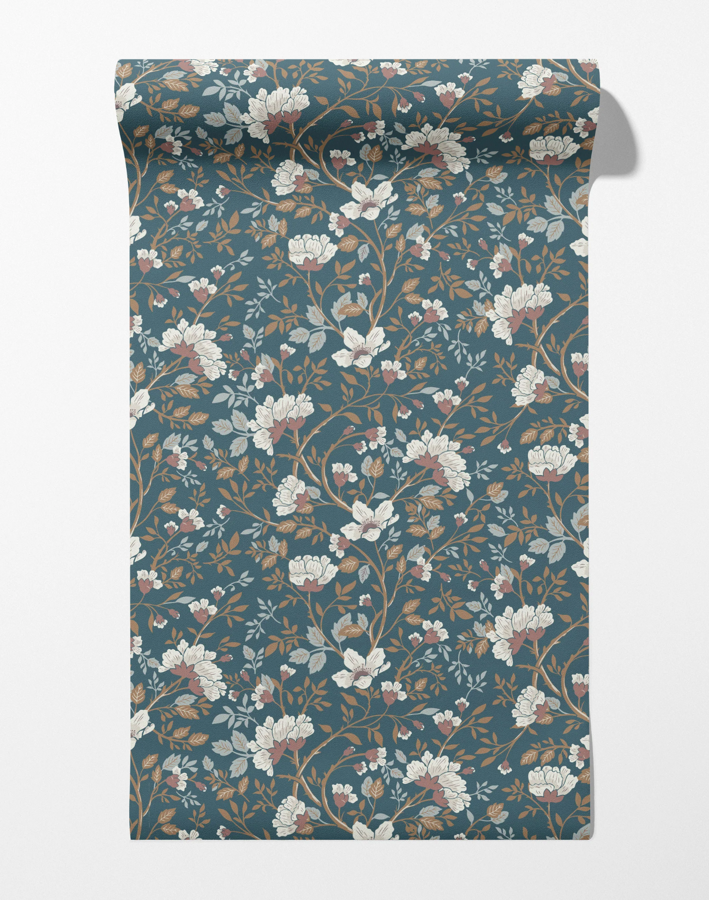 The Camelia Study Collection was Inspired by vintage botanical illustrations and heritage interiors, featuring hand-drawn vines, blooming florals, and layered foliage in rich colorways. This design carries a sense of history and warmth that compliments any space.