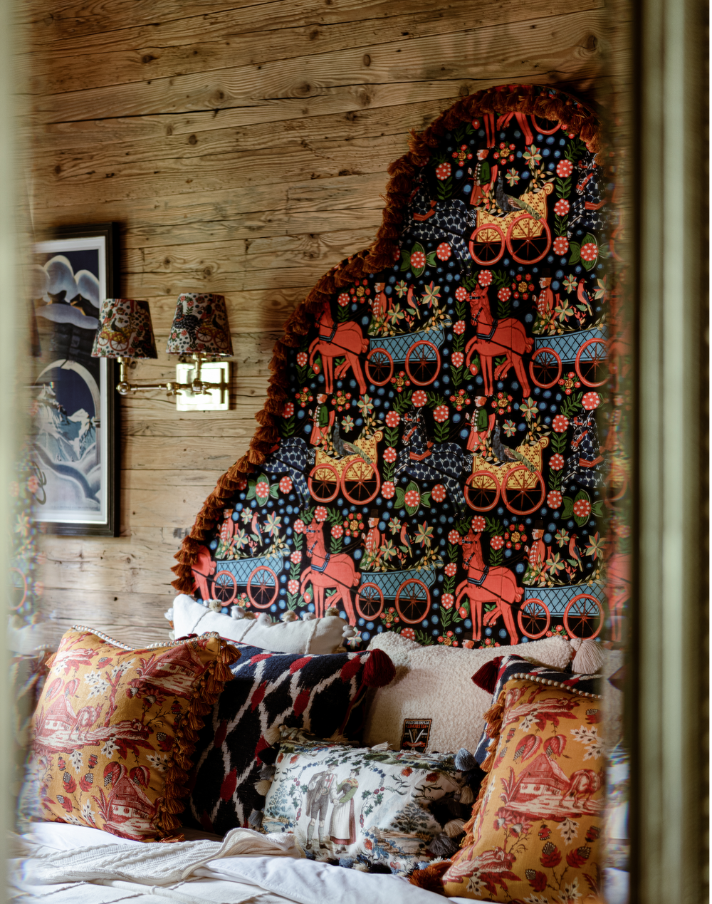 Be transported directly to the wondrous Carnival of Innsbruck with FASNACHT, an explosion of pattern that embodies the spirit of Tyrol’s favorite festival. A parade of colorful carriages, top hatted coachmen and high stepping horses trot across this dramatic black velvet, all intertwined with folkloric flowers and handsome peacocks.