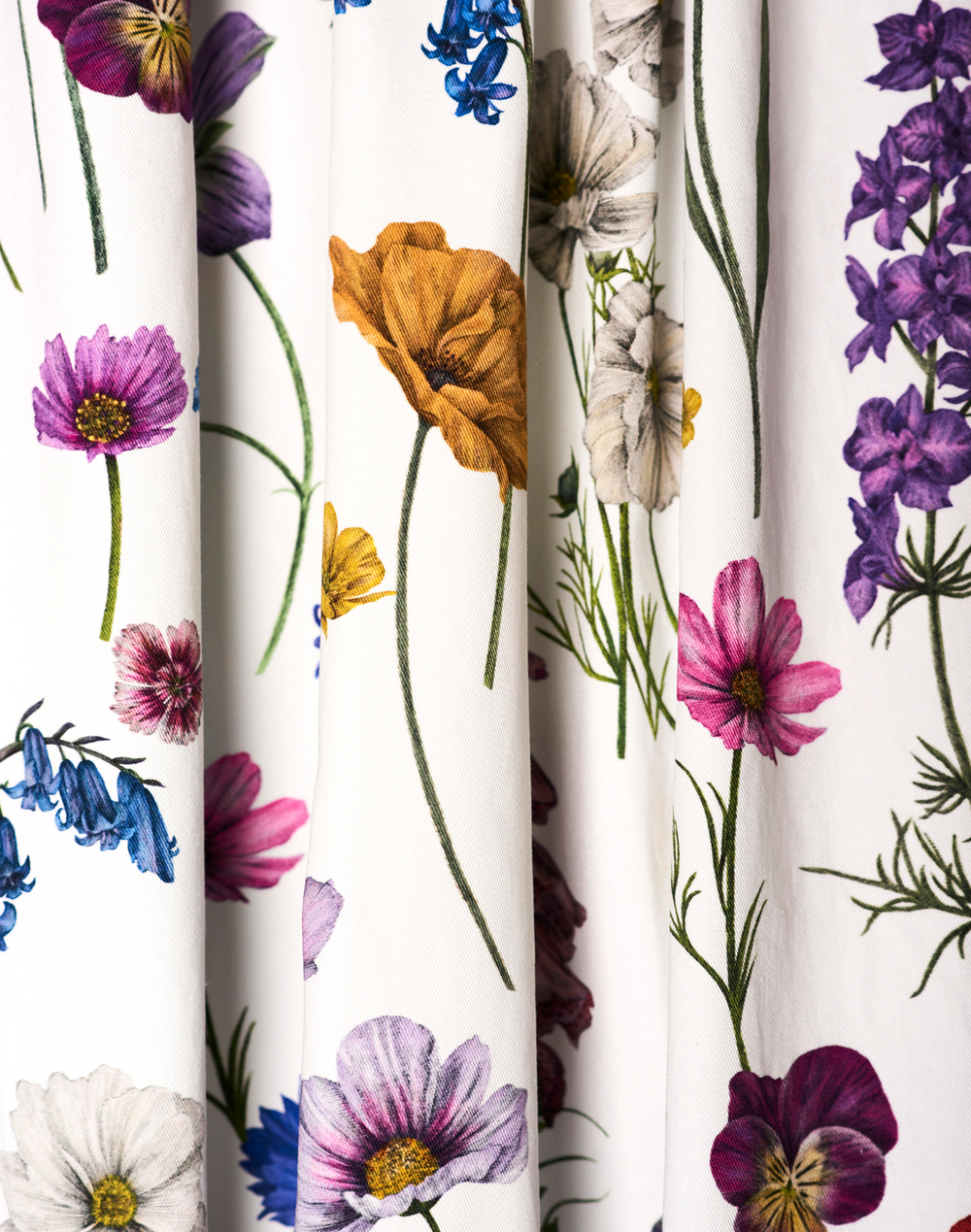 Hundreds of delicate hand drawn summer flowers dance across the wall in the 'Botanica' floral mural. The chalk color way offers a white background with a vivid, impactful bouquet.