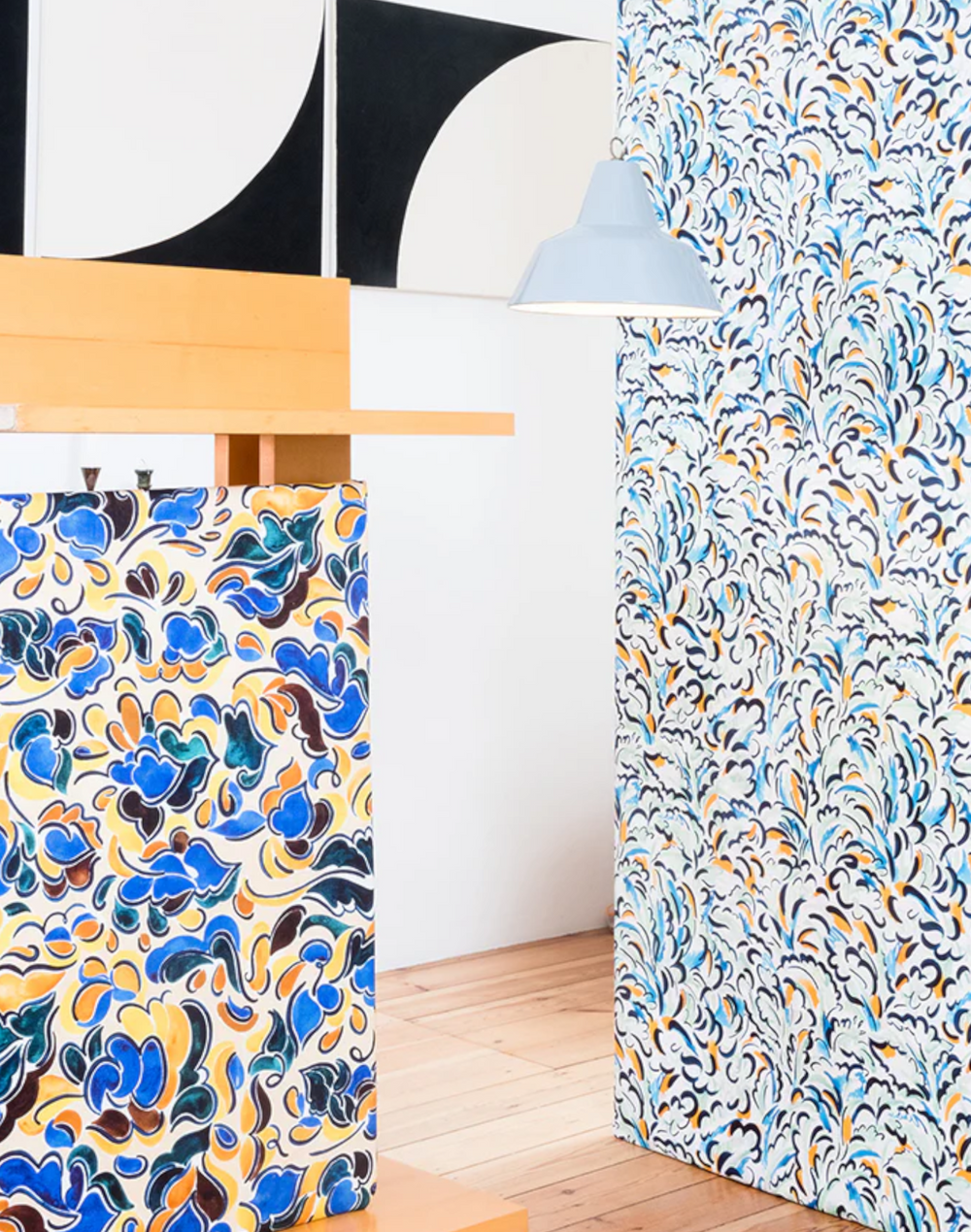 Claire de Quénetain is a painter who takes her inspiration from nature and gardens where she finds a variety of colors, shapes and movement. These references lead to her personal expression of painted marks. She aims at creating natural atmospheres for interiors. Her painting practice is applied onto walls, furniture, textiles and paper.