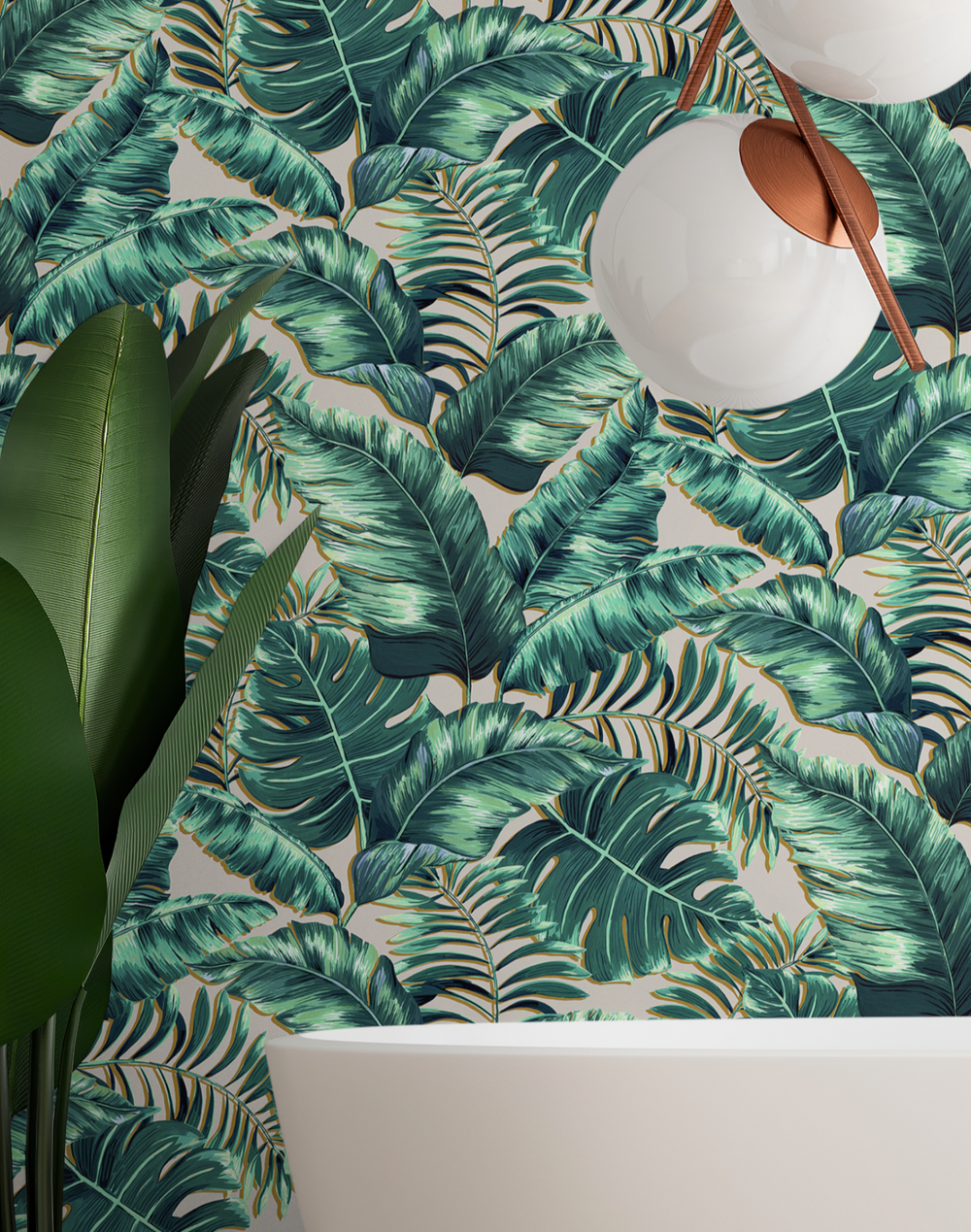 Banana Leaves Standard is a smaller scale than Banana Leaves Max. It is designed for those who are looking to recreate that tropical feeling within their own home. Hand drawn with intricate detail the leaves are a mixture of sizes and shape with various color options available.