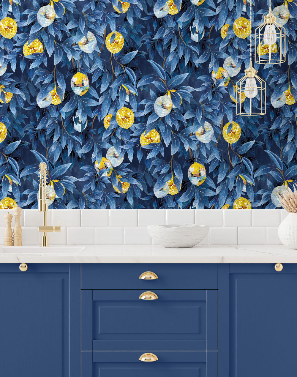 Disco Lemons, a vibrant and surprising wallpaper pattern that blends nature and nightlife, will give your interiors a new look.