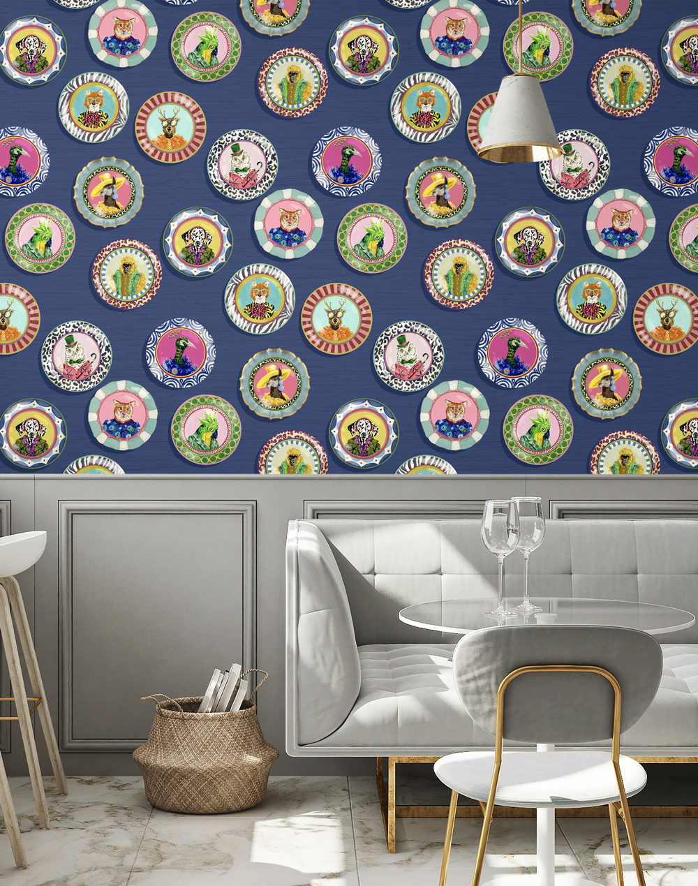 Introducing our whimsical collection of side plates, where animal prints and patterns take center stage, showcasing animals dressed for dinner in eccentric style outfits that include a gorilla in a fur coat and a fox sporting glasses and a neck scarf, adding a touch of playful charm to your dining experience.