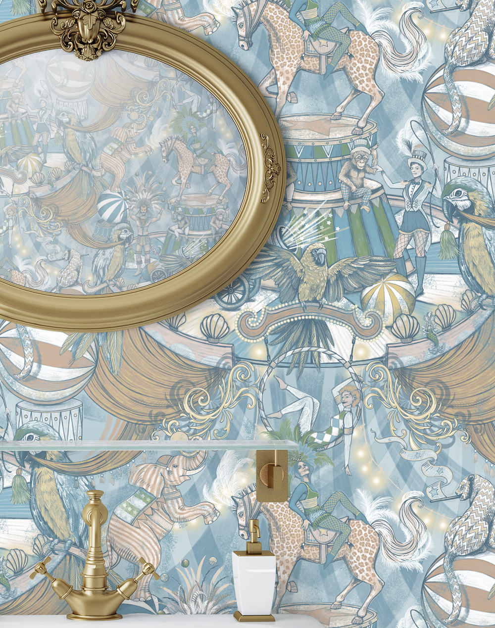 Introducing Funfair wallpaper by Brand McKenzie, a vibrant and whimsical design that announces the arrival of the carnival in town. Featuring a playful ringmaster, a colorful parrot, and a variety of other recognizable animals cleverly disguised in vibrant patterns, this wallpaper captures the excitement and fun of the carnival. The colorful and bold design is perfect for those looking to add some personality and charm to any space. Bring the magic of the carnival into your home or office with Funfair wallpaper by Brand McKenzie.