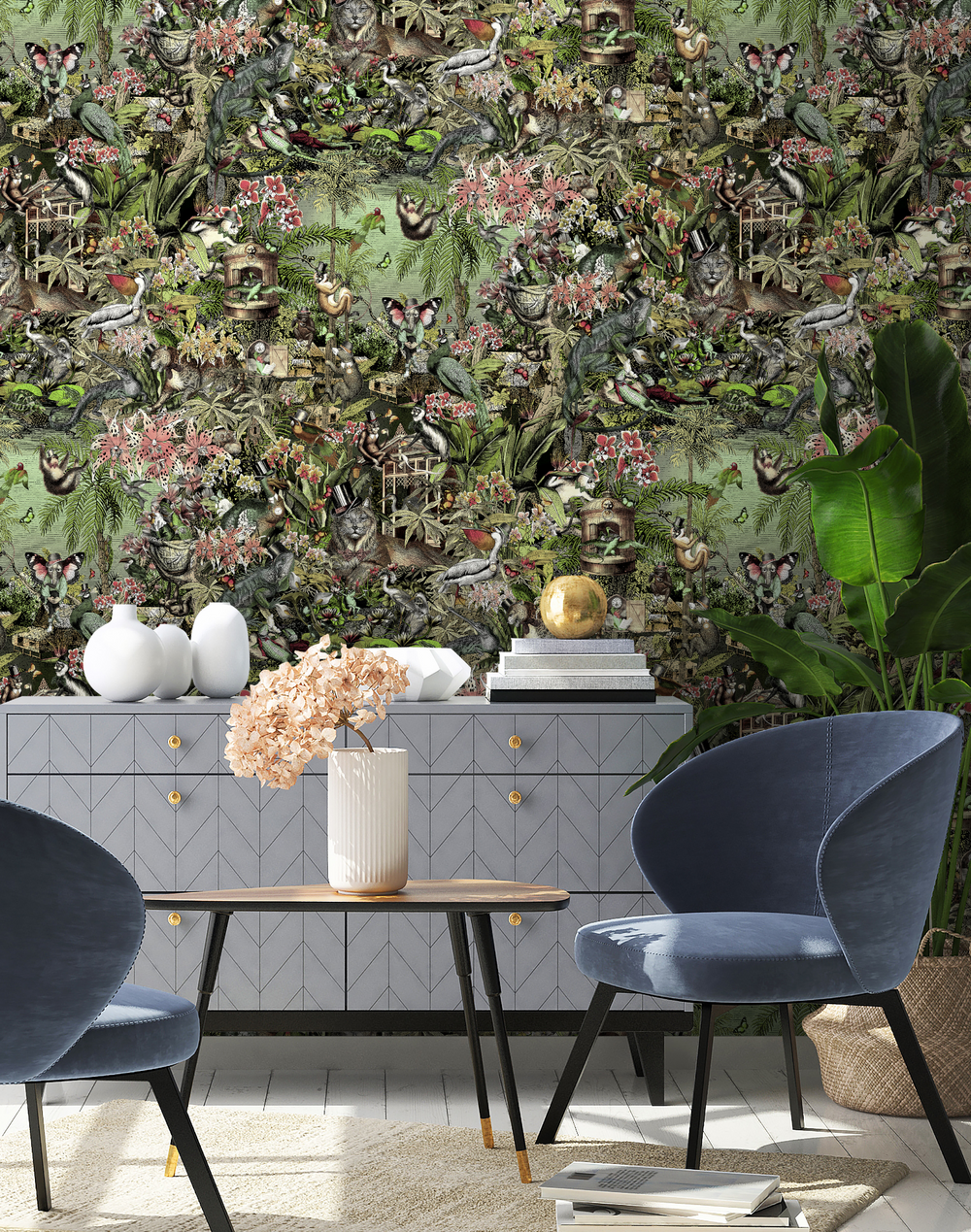 Embark on a whimsical journey through our jungle-themed world, where you can wander through lush foliage to discover animals going about their day. The lion, donning a top hat as the king of the jungle, takes center stage. Continue your stroll to the pond, where lizards bask in the sun and frogs leisurely sip a cocktail, all contributing to the charm of our quirky and delightful animal jungle.