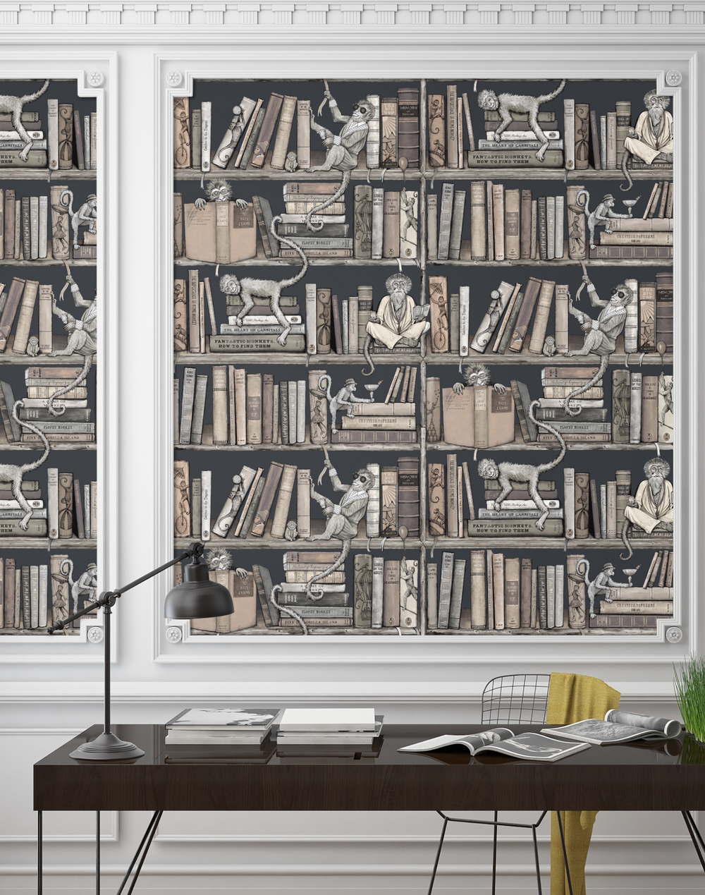 Add a touch of playful whimsy to your space with Brand McKenzie's Monkey Library wallpaper. This unique design features different types of monkeys playing, relaxing, and perching amongst the books in an interactive and charming way. Each book is cleverly titled, adding an extra layer of fun to the design. With its playful motif and beautiful detailing, Monkey Library is the perfect way to add character and interest to any room in your home or office. Transform your space into a vibrant and fun-loving environment with this stunning and eye-catching wallpaper.