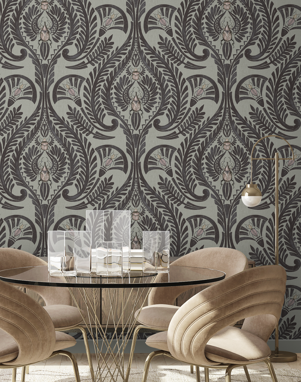 Modern meets traditional in this wonderful interpretation of a 1920’s damask. Intriguing insects are subtly and strategically placed to add distinctive character bringing quirkiness whilst complementing the design making The Great Damask by Brand McKenzie a truly amazing piece of art.