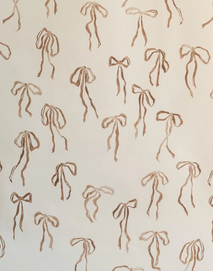 Hand painted watercolor bows are made into a pattern of dancing ribbons. A design that ponders fluidity and rigidity, masculinity and femininity, novelty and tradition - in colorways ranging from fresh and bright to tonal and moody.