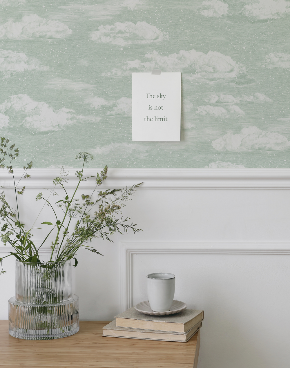 Inspired by the gentle drift of the skies, this design beautifully illustrated by Sian brings a sense of serenity and wonder to your living space. Easier to apply than traditional wallpaper, paste can be applied straight onto the wall instead of on the paper.