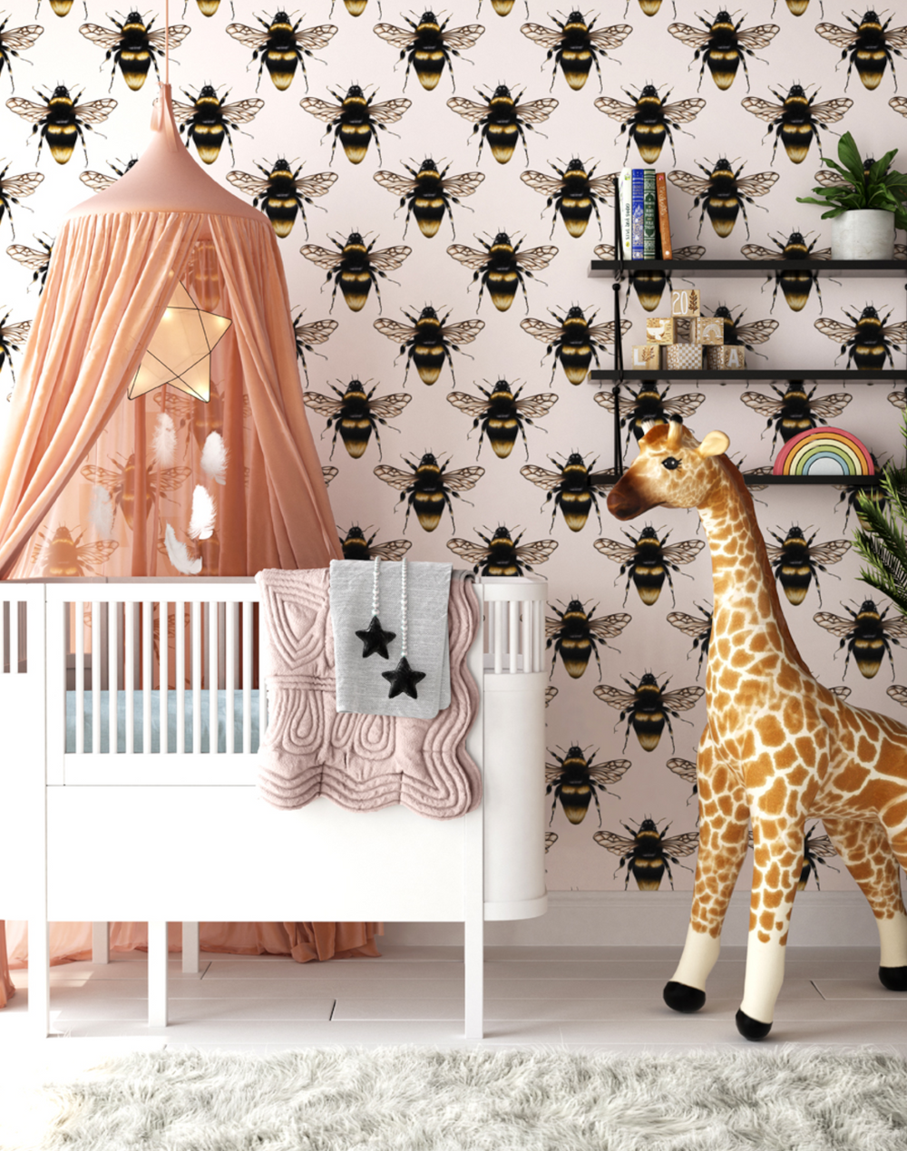 This fabulously realistic design captures the beauty in our Honey Bees and celebrates the importance of one of the most important insects on our planet. The gorgeous dusty pink and playful bee composition creates a unique and stylish wallpaper which will certainly have you buzzing about your interiors!