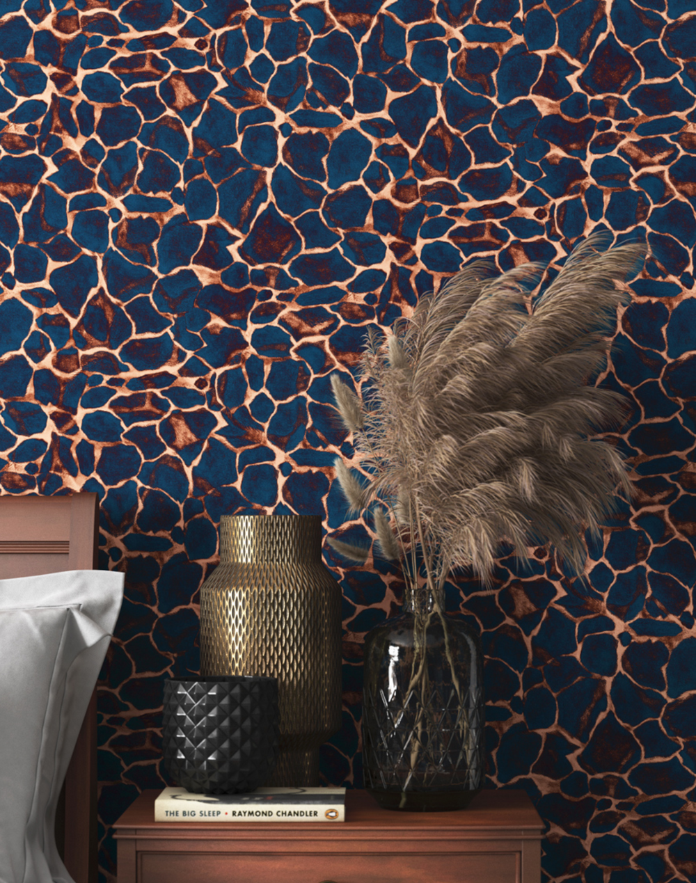 We’ve reinvented the giant patches found on a Giraffe’s hide with this unique design, replacing the distinctive brown and golden tones with vibrant blues and warm copper. As with our Leopard and Zebra print, the intricate detail of every hair stroke gives this design extra texture and depth.