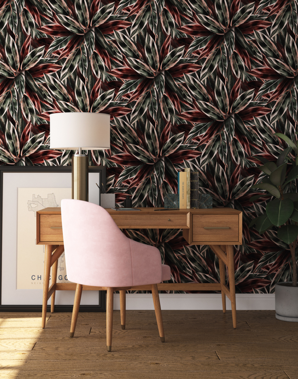 Inspired by one of our favorite plants ever, ‘Stromathe Sanguinea Triostar’, Triostar will certainly bring a unique touch to any interior space. These gorgeous leaves have a beautiful natural color combination of pink and sage green, which we absolutely love and combined with our textured hand drawings, create an organic and realistic design, which will bring warmth to your interiors. Bring the outside world in with this striking and distinctive pattern