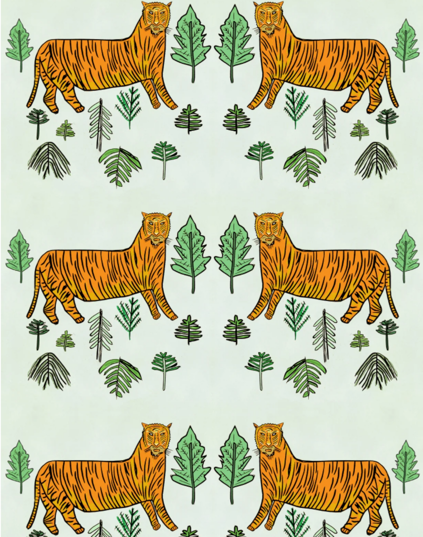 Tiger Tiger, Mint - Linen Fabric